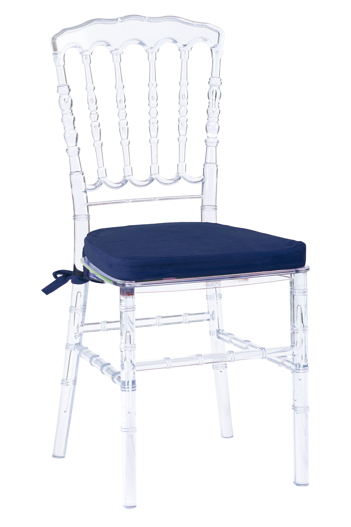 Cadeira Dior Cristal assento veludo azul marinho